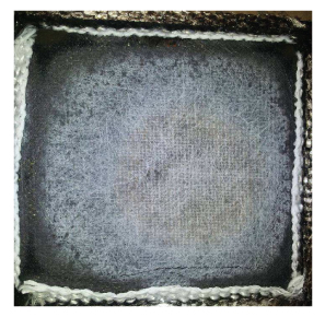 Visual inspections were conducted on the exposed surfaces of the protected and unprotected samples after fire tests. As shown in Figure 21, the Fireshield® veil burnt into a thin and white layer which, in the case of fibreglass glass face laminate, appeared to have protected the fibreglass reinforcement behind it from melting.